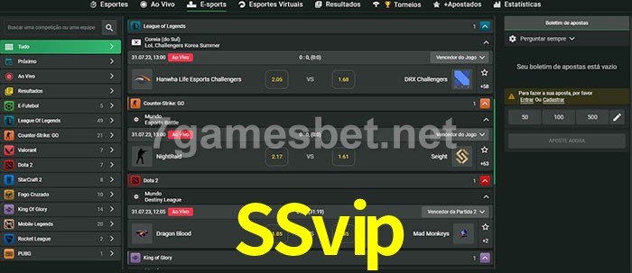 A aposta SSvip oferece aos jogadores a experiência mais conveniente de apostas em eSports!